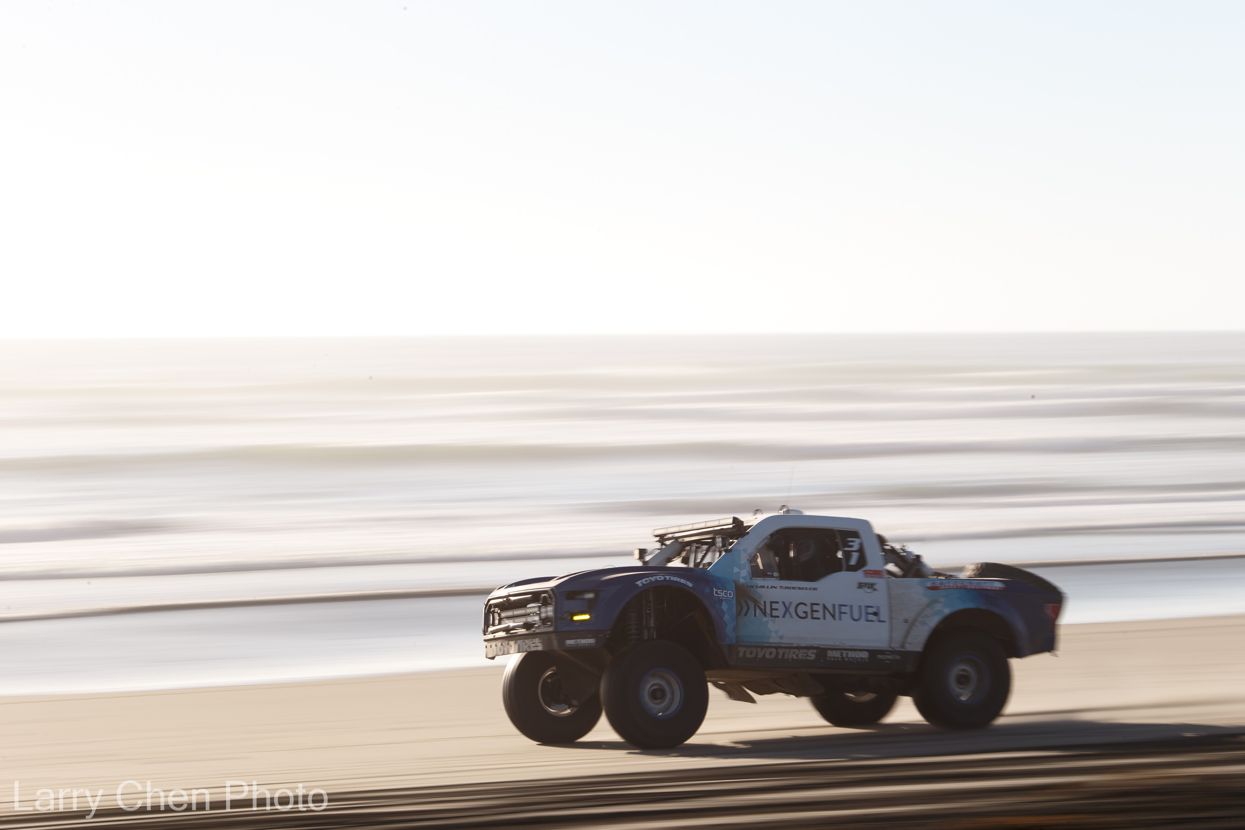 As we flew towards Rancho Relaxo, I was blindly shooting every race craft I could see. I just happened to catch Shannon Campbell in his Ultra4 truck going full-tilt on the ocean side of the course.