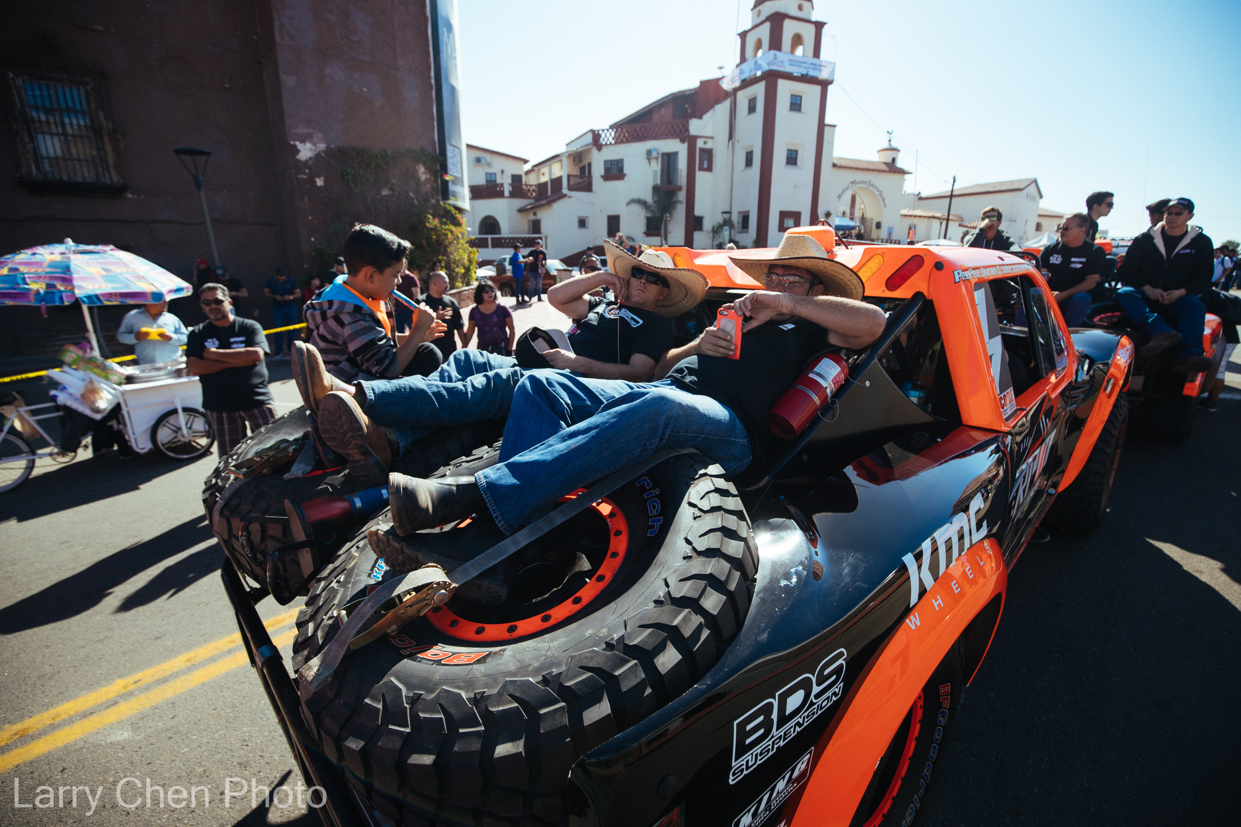 Larry: While shooting the two bikes was important to us, the priority was to head over to Ensenada in time to see the trophy trucks leaving the line.